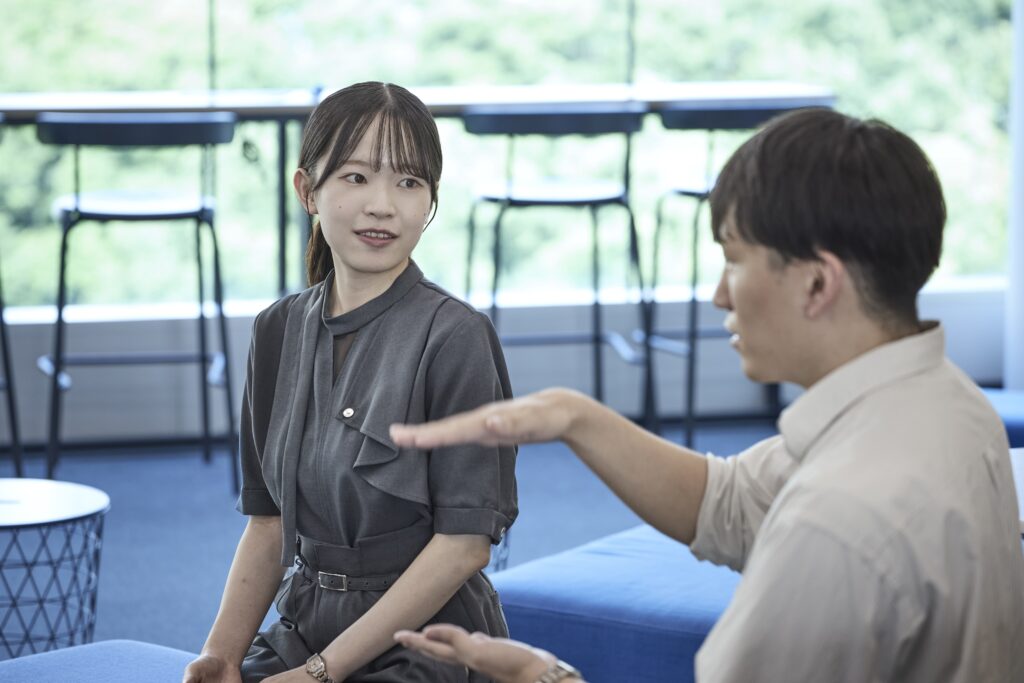 阿部:私は同じチームに同期が一人いるため、困ったことがあればすぐに相談できています。お互いに助け合いつつ、時には競い合える環境です。