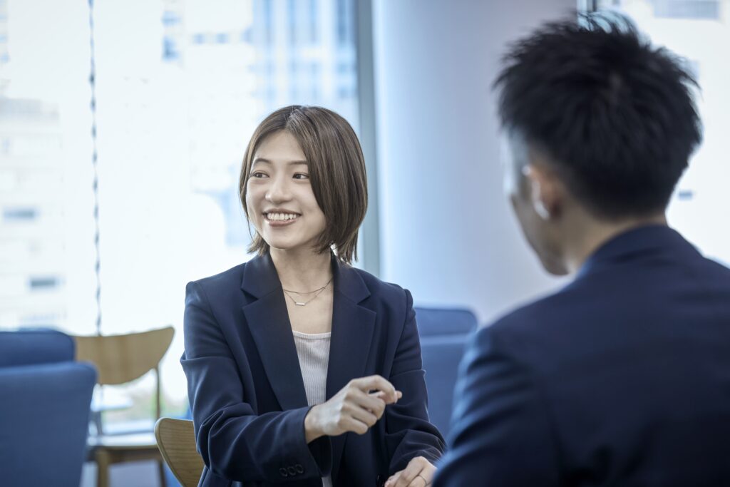 宮下:今は新しい業界に保証商材を展開する役割を担っているため、かなり0から作り出すことが多いです。以前勤めていた金融機関でも営業職を経験しましたが、そこでは決まった資料で営業トークをする定型営業スタイルでした。しかしSolvvyでは営業方法だけではなく、“何を売るか”を自分たちで考えるところから始まるのが大きな違いです。BtoBの営業は初めてであり、サービスを導入いただくまでに複数の担当者や役員に提案をする長いプロセスがあり、調整力や忍耐力がより必要になるのが前職とのギャップになるので、今まさにチャレンジをしながらスキルアップ中ですね。