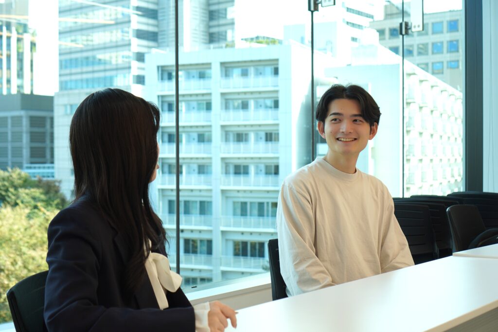 大森:僕の場合は長期インターンが決め手でした。2回長期インターンに参加させて頂いたのですが、1回目は業務マニュアルの整備、2回目は営業活動をサポートするための資料作成に携わりました。インターン生でありながら、社員の皆さんと同様の実践的な業務に挑戦させていただいたことに驚き、それがとても面白く刺激的でした。学生だからと線を引かれることなく「任せてもらえる会社」なのだと実感し、お互いを尊重し前向きに仕事に取り組む姿勢を肌で感じることができ、ここで働きたいと強く思いました。