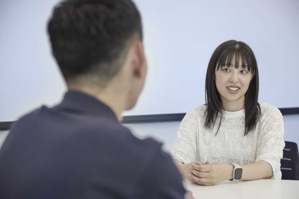 阿部:私も、上長との1on1で「アポイントを獲得したお客様の商談を自分でやってみたい」と相談したところ、「いいじゃん、やってみなよ」と背中を押してもらえました。もちろん、何でもかんでも1人でやるわけではなく、手厚いサポート体制があるのがSolvvyの魅力です。配属当初は電話が本当に苦手だったのですが、先輩社員の方が1年間、毎週つきっきりで電話のログを確認し、丁寧にフィードバックをくれました。常に気にかけてくれる安心感があったからこそ、挑戦できたのだと思います。