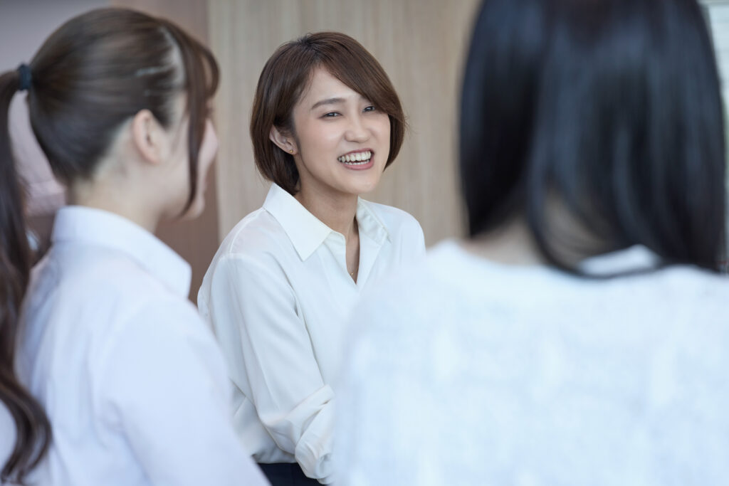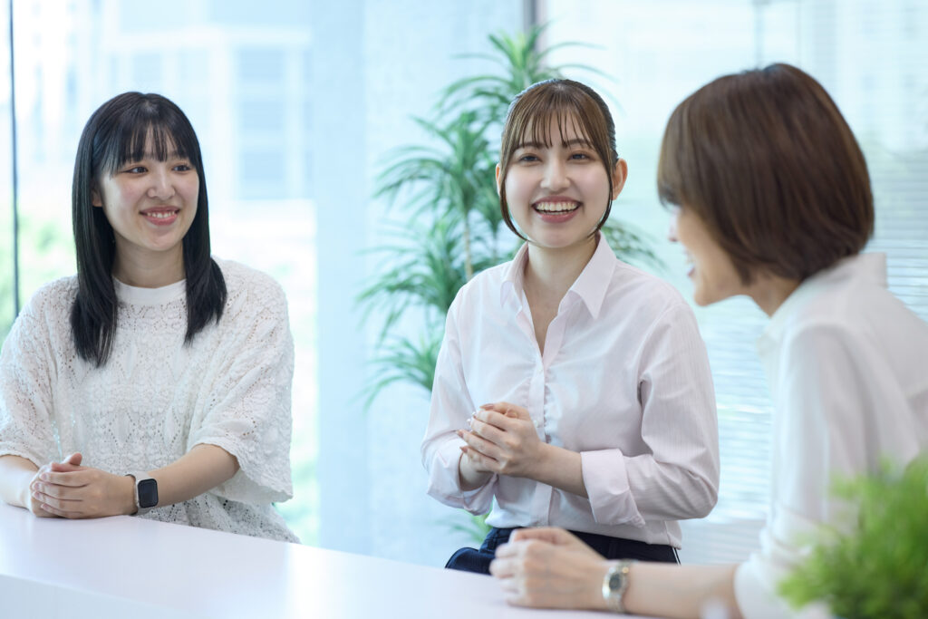 原﨑:実際に活躍している女性の先輩方が身近に多くいることが、自分のモチベーションになっています。「女性だから、若手だから」という壁がなく、頑張ればしっかりと評価してもらえるという実感を持てる環境です。新卒入社の先輩方が活躍している姿を見ると、自分も頑張ろうと前向きな気持ちになれます。
